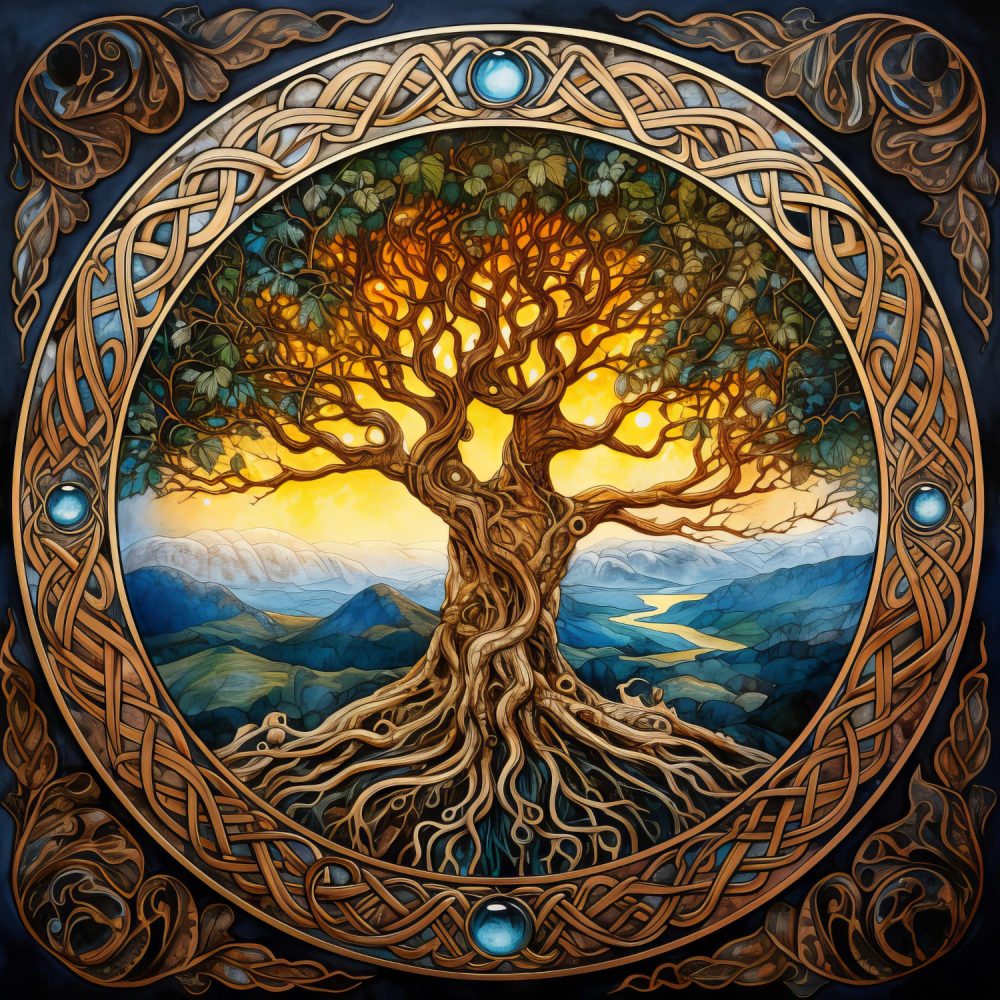 Yggdrasil wird meist als gewaltige Esche beschrieben, deren Krone den Himmel durchdringt und deren Wurzeln bis in die tiefsten Welten reichen. Er ist nicht nur ein Baum, sondern ein Weltgerüst, das alle Ebenen der Existenz miteinander verbindet. An seinem Stamm, in seinen Ästen und an seinen Wurzeln entfaltet sich das gesamte Schicksal der Welt.